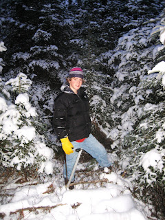 We went out to our favorite spot to cut down a Christmas tree last night. We take a scrawny young balsam from under the powerlines, where they are not allowed to get too tall anyway. This is the theory.