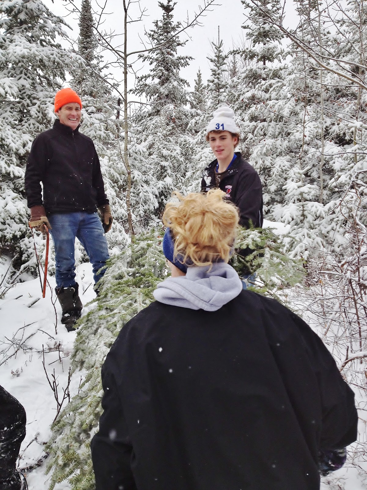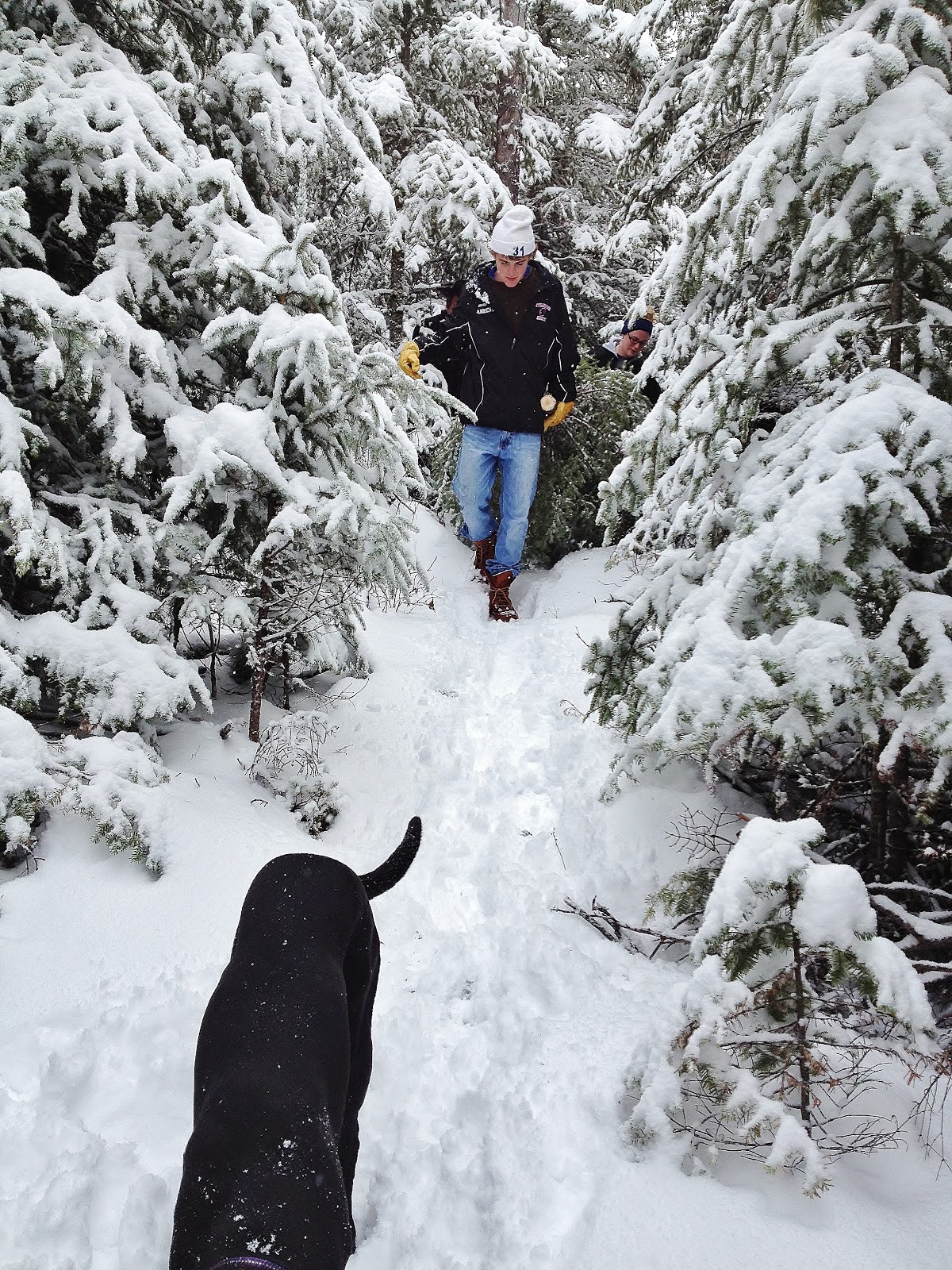 The snowy woods were fairly enchanting, and we joked a little bit about the damn tradition, and eventually we all fell under the spell of the woods on a fresh day. When you have 17 acres of trees…..the trick of finding the “perfect Christmas tree” actually turns into trying to find a weedy Charlie Brown balsam with a decent shape that is also shading the growth of a nice little white pine.