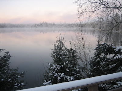 Life at Tuscarora Lodge Morning Coffee Andy lost all bets-no ice on the lake this morning. But the hoarfrost on the surrounding trees sure made for a nice view while we drank our morning coffee. November 11, 2008