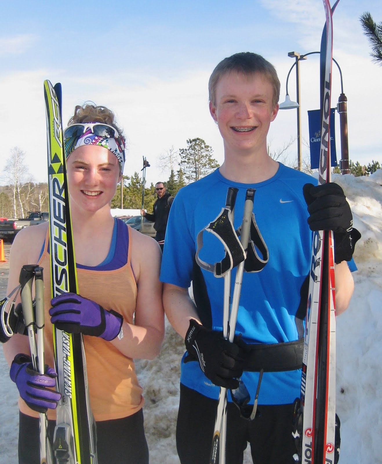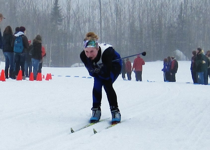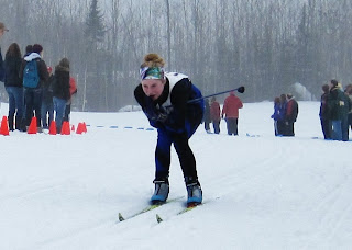2 hours later, the skate winner starts out of the gate with classic skis. The other skiers leave the starting gate according to the time they finished-behind the first skier. In the case of the state meet, 120 skiers leave within 5 minutes, sometimes as many as 10 at a time. All skiers “pursue” the winner , and when they finish, the crowd now knows who is the first place finisher, in real time. In the State Championship race, all Minnesota skiers compete against each other (there are no AA or AAA designations), and Duluth East won both boys and girls events. The Cook county skiers compete in the same section as Duluth East, so it gets pretty exciting to see all of those kids we know skiing so well.Shelby and Kieran both qualified for the state meet this year. They’re longtime friends-from 11 year old Tuscarora pirates to the state ski meet. How cool is that?