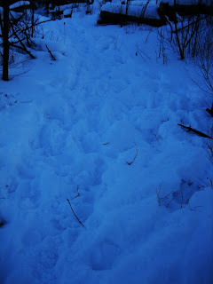 Andy and I followed fresh moose tracks for the entire Centennial Trail—apparently well traveled—(we have spotted a mother and two adolescents by the bus stop.)